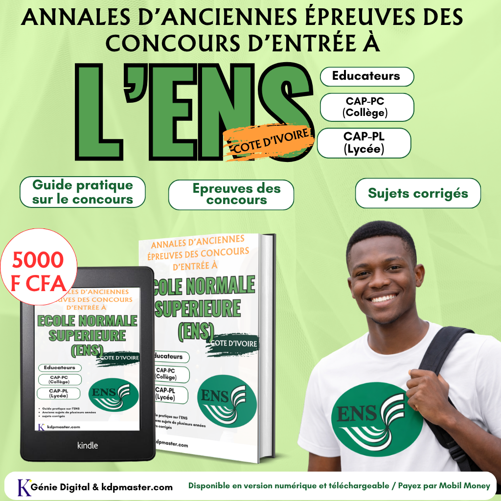 Vous préparez le concours d’entrée à l’École Normale Supérieure (ENS) d’Abidjan ? Cet annale regroupe les anciennes épreuves des concours directs et internes de l’ENS Abidjan, pour une préparation réaliste et efficace.